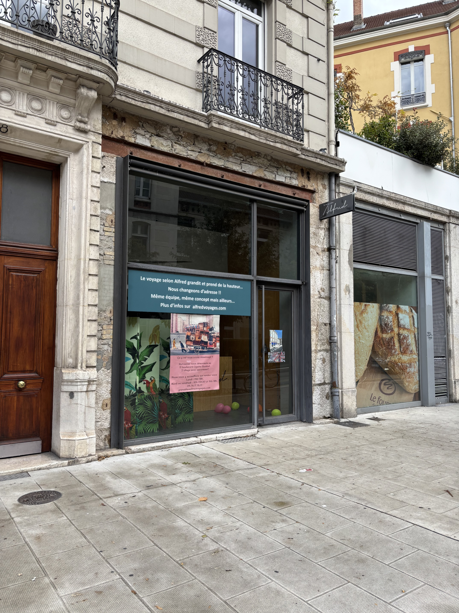 Environnement commercial : L'Eau Vive, BNP, Brasserie Chavant, lycée Champollion..