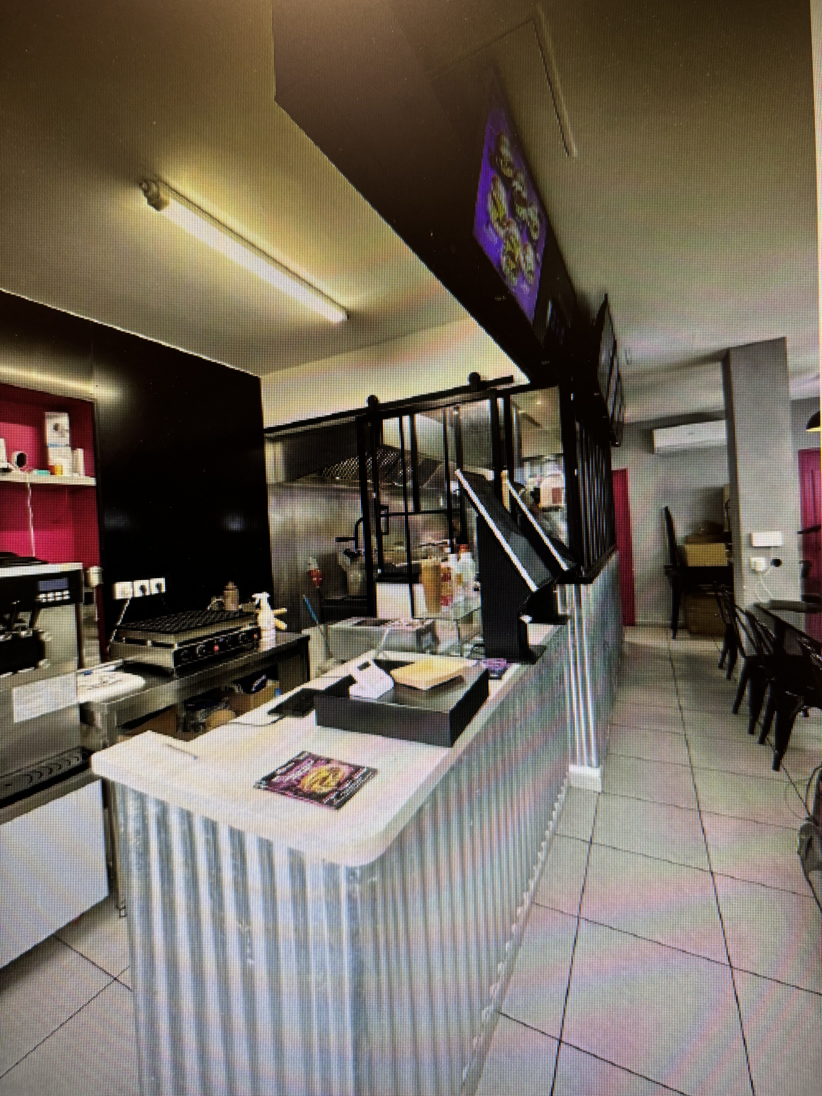 Emplacement équipé d'une hotte professionnelle et d'une gaine à charbon actif.