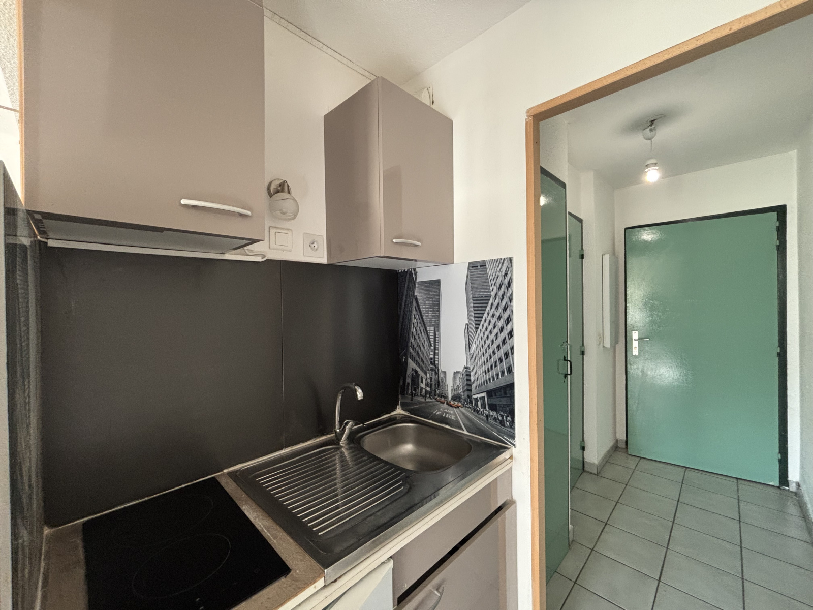 Situé au rez-de-chaussée d’une résidence, ce studio se compose d’un hall d’entrée, d’une pièce principale avec coin nuit, d’une kitchenette équipée, ainsi que d’une salle d’eau avec WC.