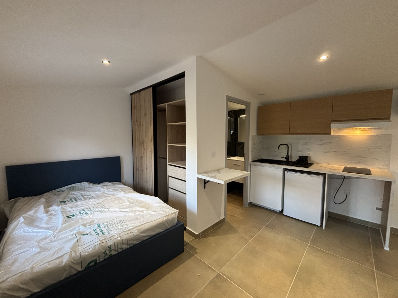 80ter Nicolas Chorier à Grenoble - Studio meublé - 1 er étage -Quartier Chorier / Berriat - kitchenette equipée sur pièce de vie - Salle d'eau chauffage individuel clim AIR/ AIR - eau froide collective (Ct syndic ) - Loyer 570€ + 20 € charges - Dépôt de garantie 1140€ - Honoraires 280 € dont 64 € Frais état des lieux