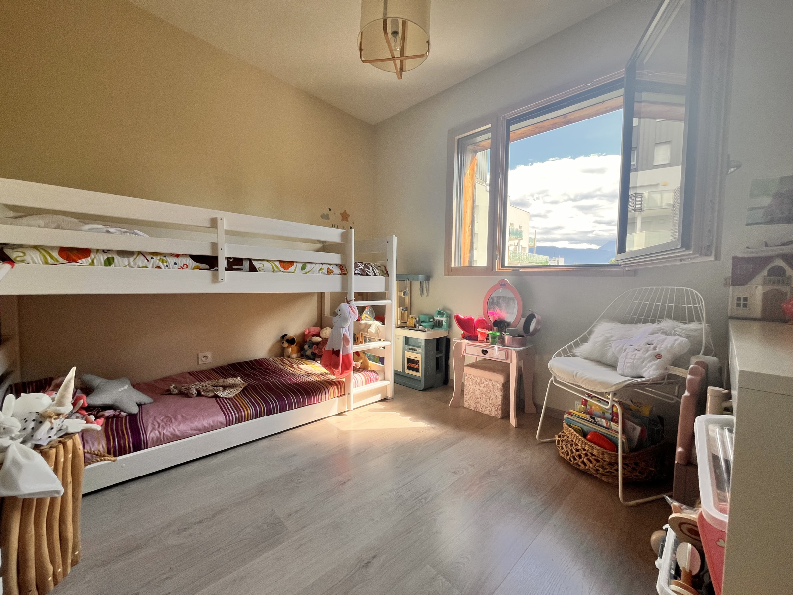 Il se compose d'une entrèe/dégagement desservant la pièce de vie avec cusine toute équipée ouverte et un accès à la terrasse abritée de 10 m² sans vis-à-vis et avec une vue dégagée sur le Vercors. On trouve ensuite un espace nuit composé de 2 belles chambres, d'une salle de bains avec fenêtre et d'un wc séparé.
