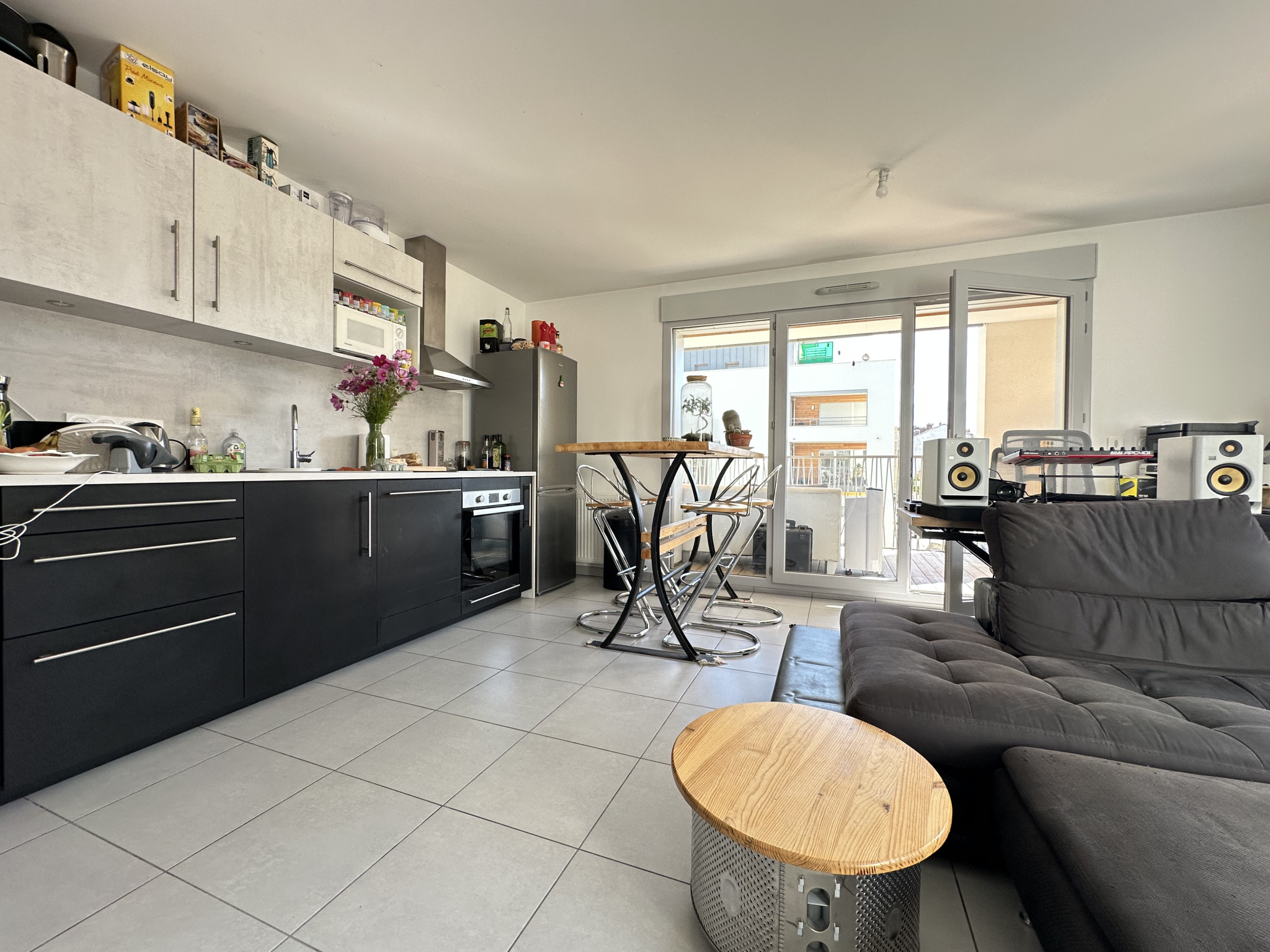 - un séjour avec cuisine ouverte équipée donnant sur une terrasse exposée Est,