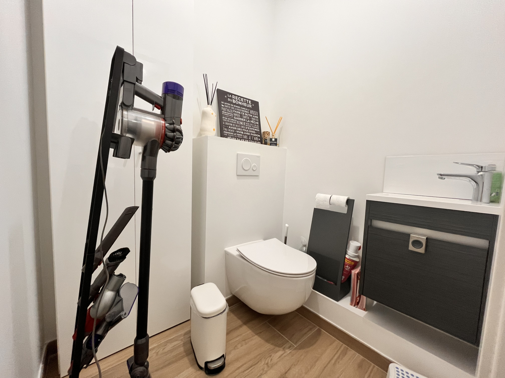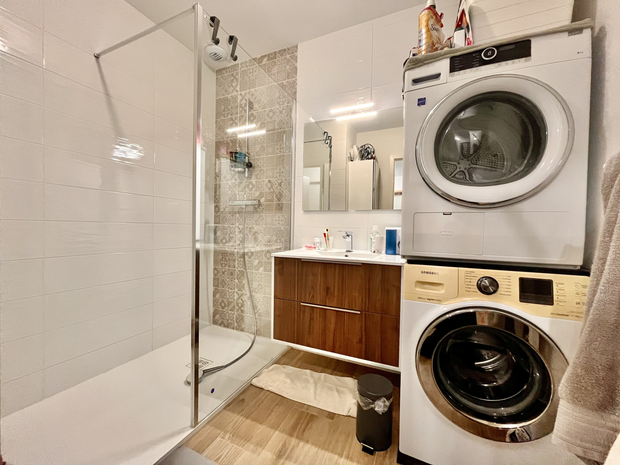 Il se compose d'un hall d'entrée desservant un séjour double de 30 m² avec cuisine équipée ouverte et un accès à la terrasse. Un espace nuit composé de 2 belles chambres avec placards, d'une salle d'eau avec douche italienne et d'un wc séparé.