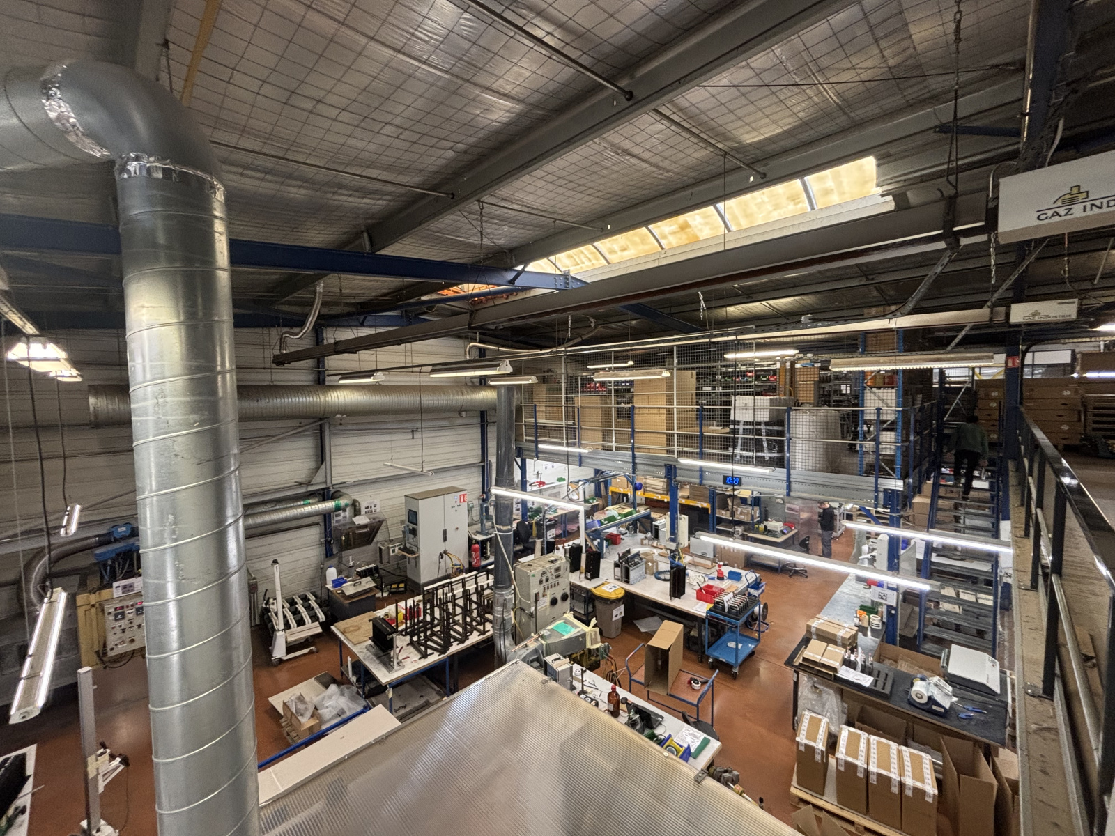 Climatisation réversible dans les bureaux, chauffage par radiants gaz dans les ateliers.