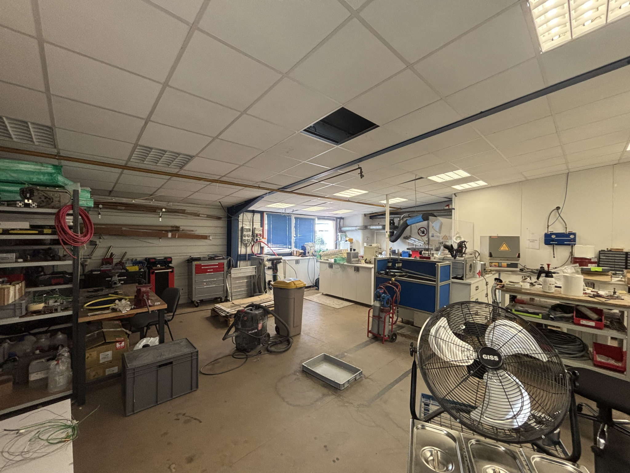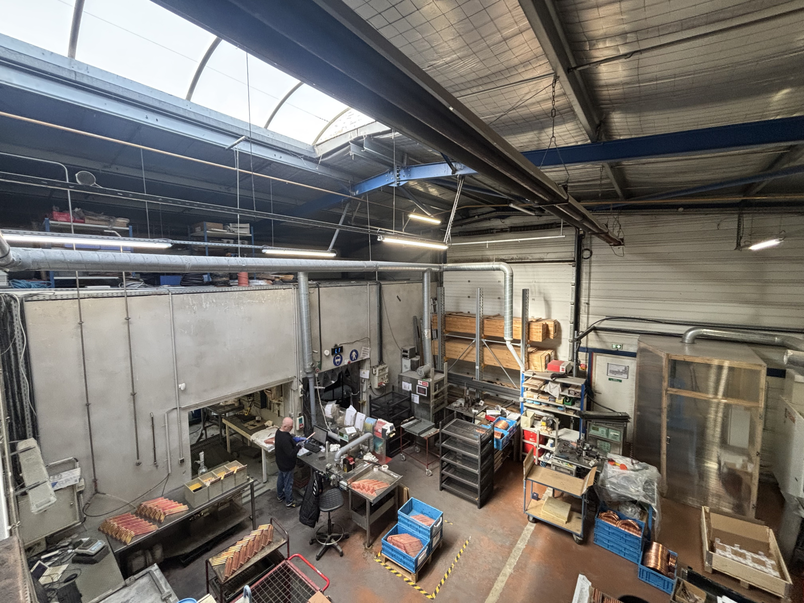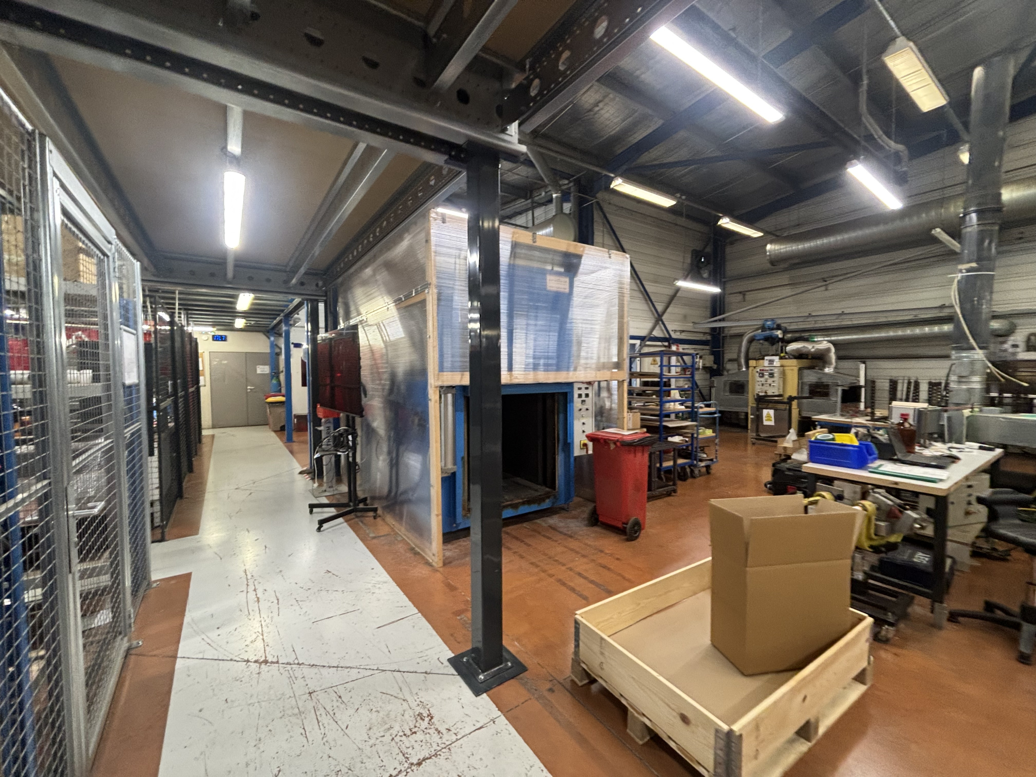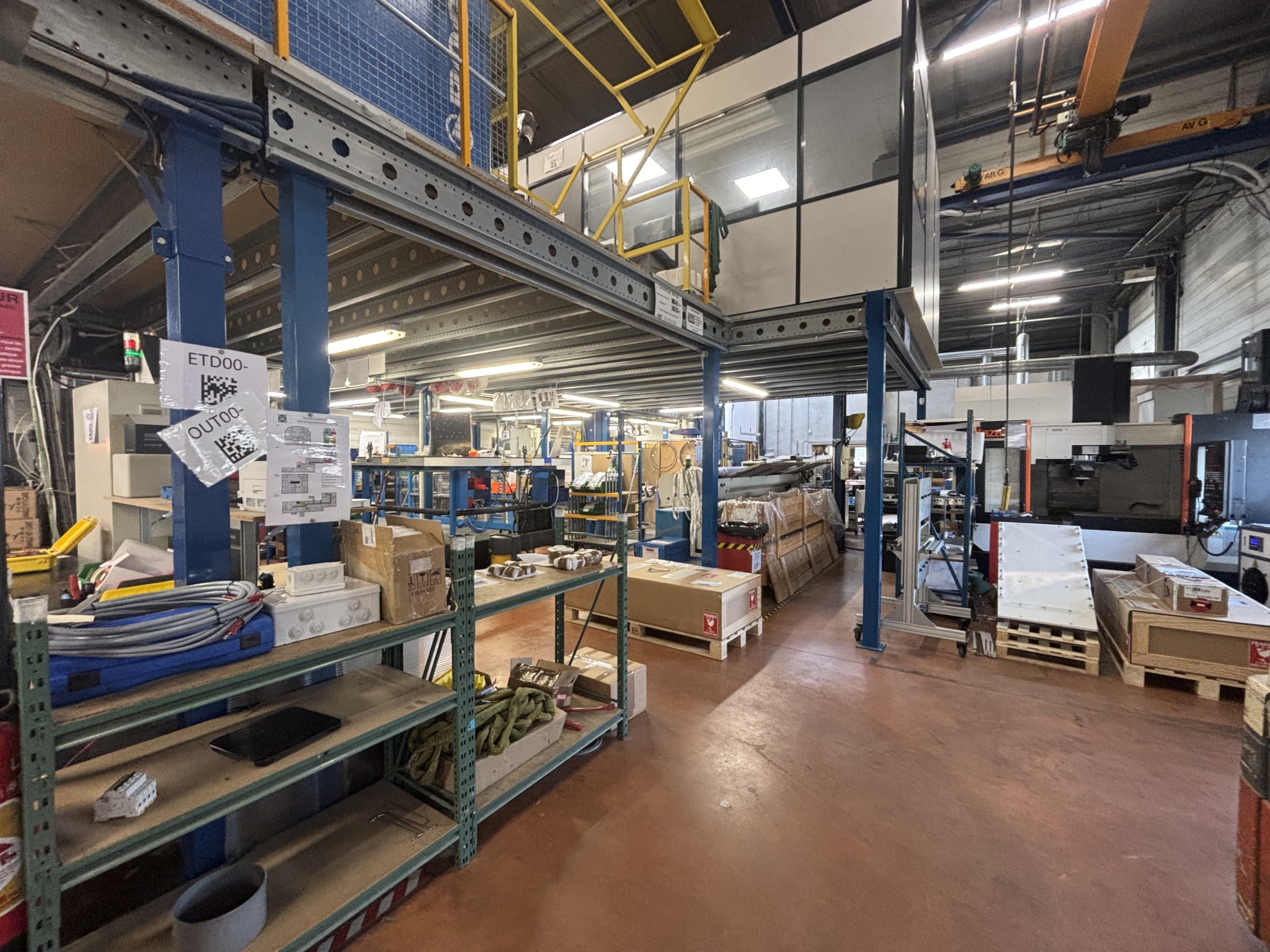 - Un bâtiment à usage d'atelier 900 m² attenant au précédent, avec dans le volume une mezzanine aménagée.