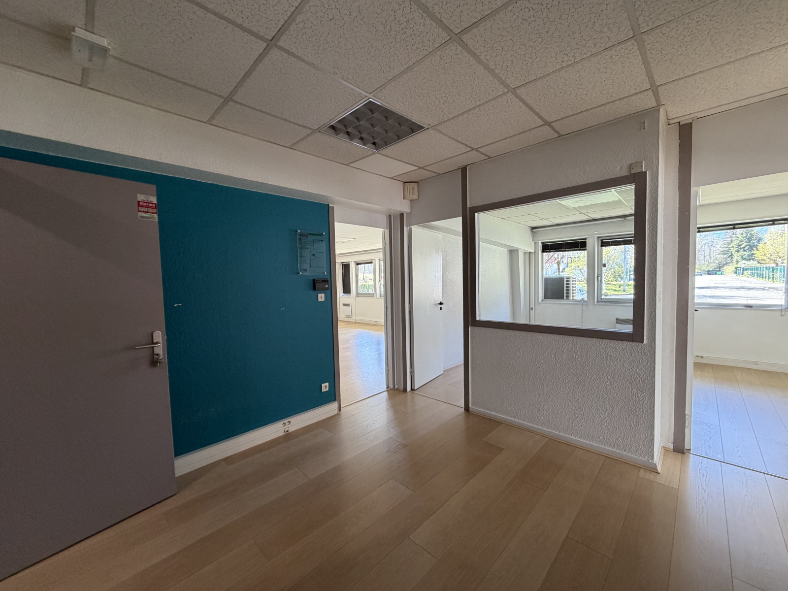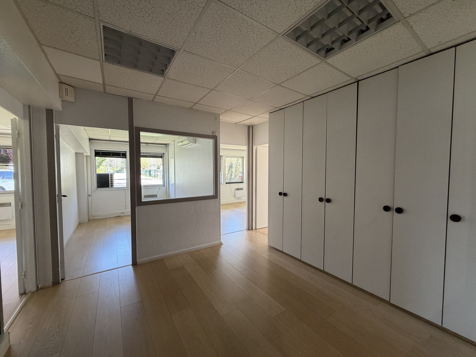 Une surface de bureau de 105m², au rdc d'un immeuble de bureau, le plateau est composé de plusieurs bureaux et d'un open space, et Wc.