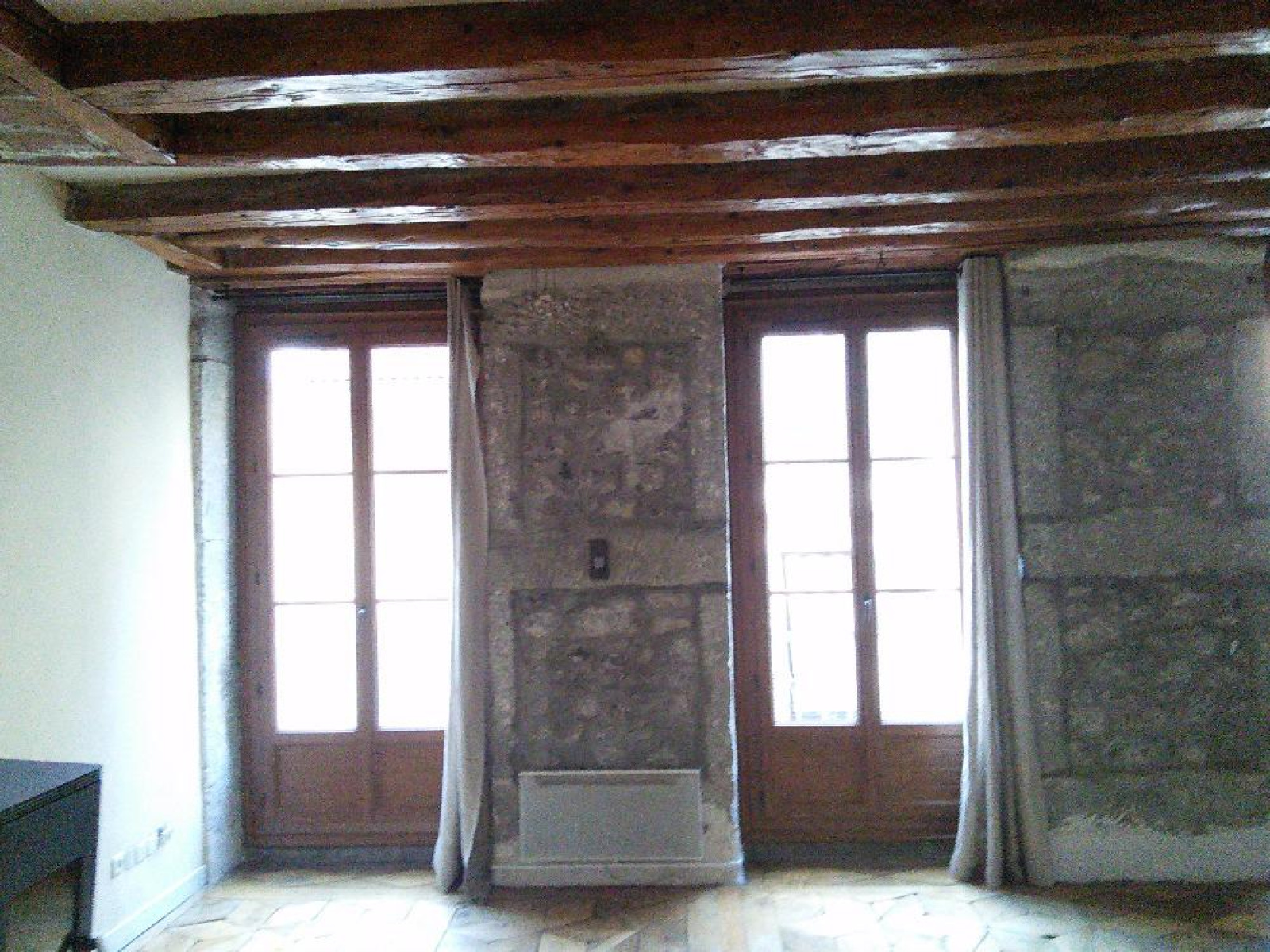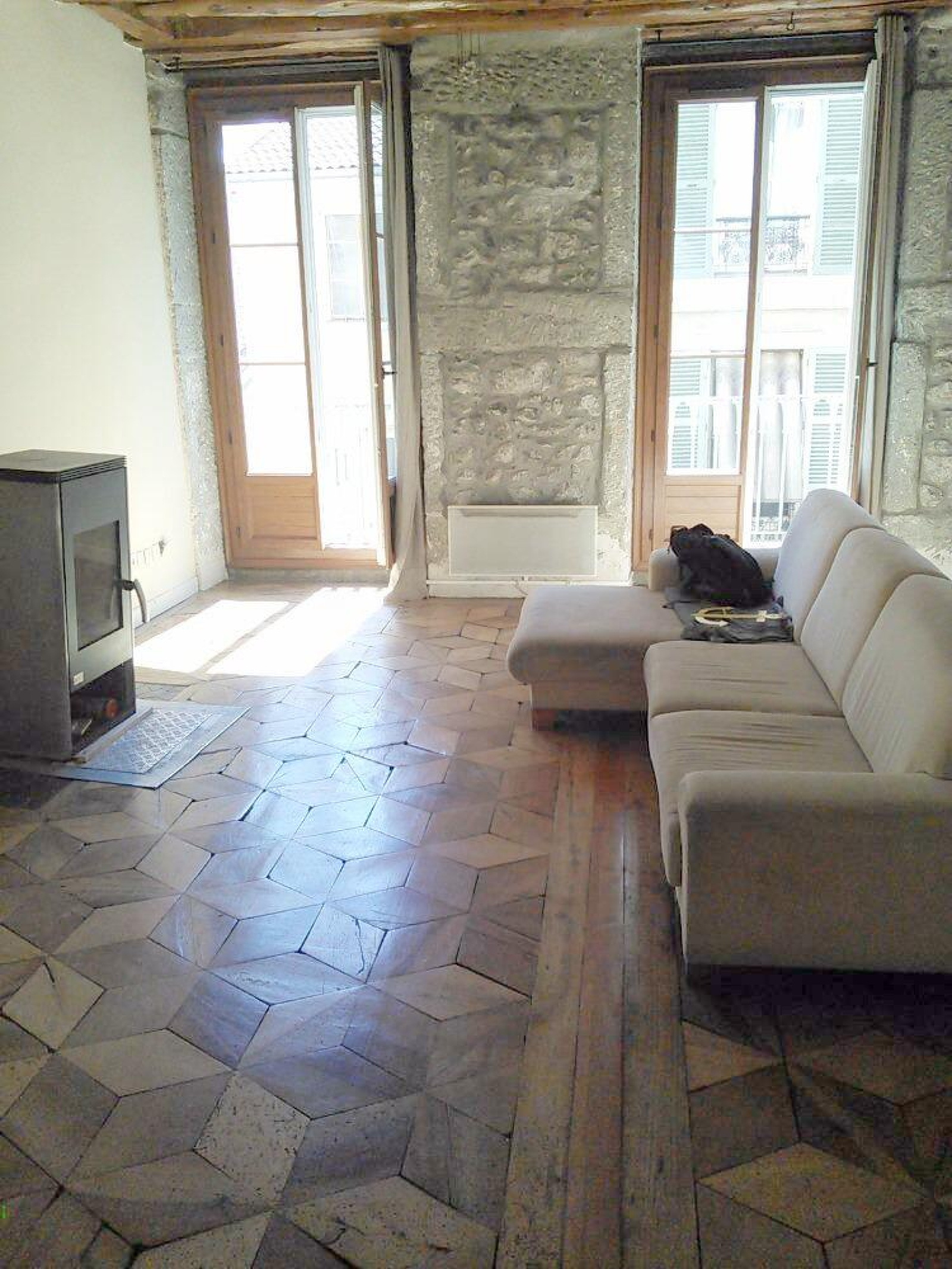 2 P+C - Centre ville Grenoble - Logement Atypique situé au 2° Etage d'une surface de 56m² au 7 rue de Sault avec beaucoup de cachet poutres apparentes et pierres, composé d'une cuisine équipée avec plaque, hotte, four ouverte sur séjour avec poele à bois et chauffage individuel électrique- Chambre donnant sur cour - Salle de bains - WC Séparé - Hall avec grand placard- Loyer 731€ + 29€ charges - DG 731€ - Honos agence 731 € dont EDL 168 € -