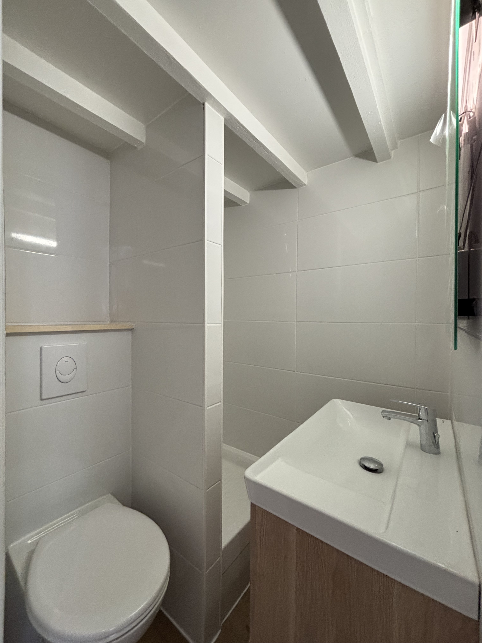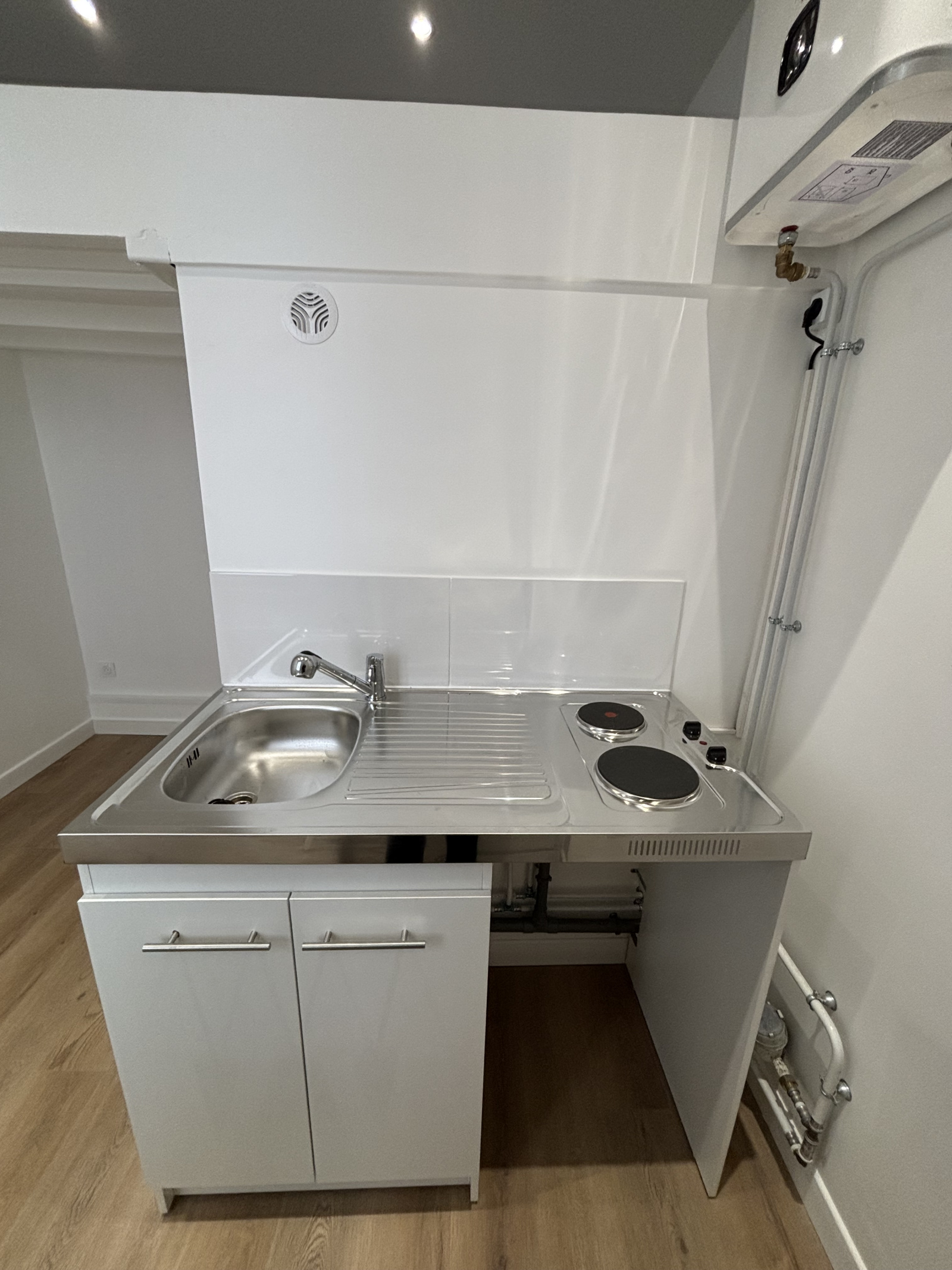 GRENOBLE, 4 cours de la Libération, studio de 9m² (+5.20m²) entièrement rénové au 1er étage dans cour, comprenant une mezzanine, une kitchenette, une salle d'eau. Chauffage ind élect.