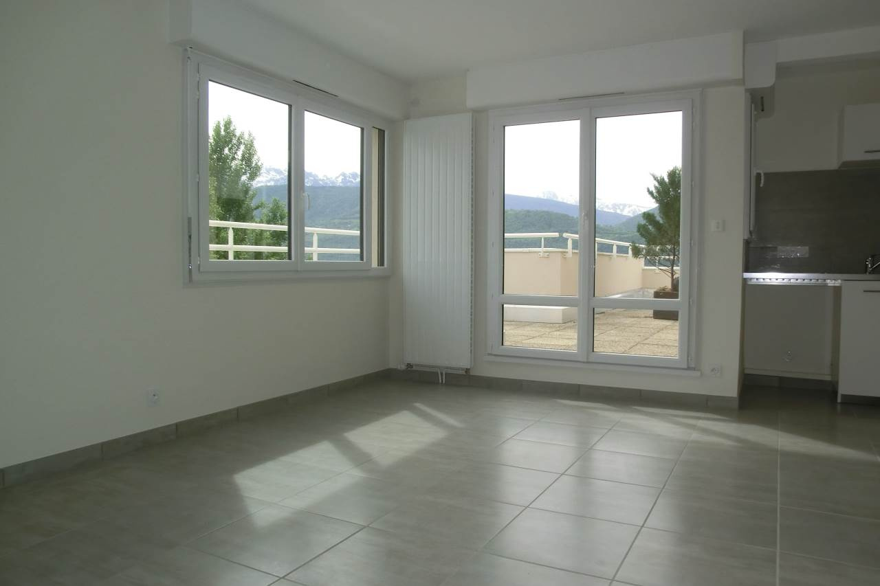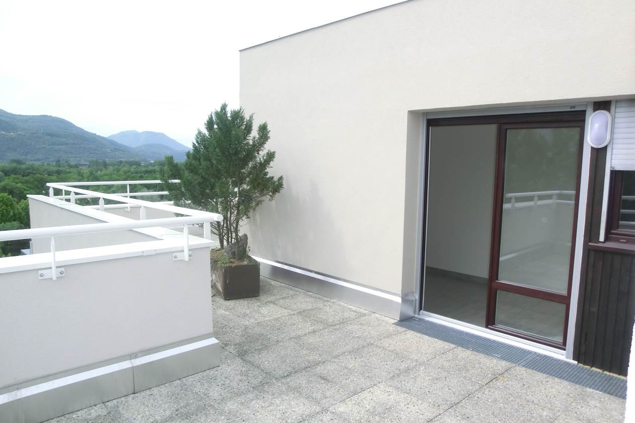 MEYLAN - 7 Av du Vercors - 2P+C 46.54m² - 9 ème et dernier étage - très grande terrasse avec vue imprenable sur les montagnes - cusine équipée (meubles + plaques + hotte) ouverte sur le séjour donnant sur la terrasse - salle d'eau avec sèche serviette - chauffage collectif + eau chaude coll - park copro - dble vitrage - cave - Loyer 808 € + 80€ Charges- Etat des lieux 138 € - Honos 605 €- Dépôt de garantie 808 € -