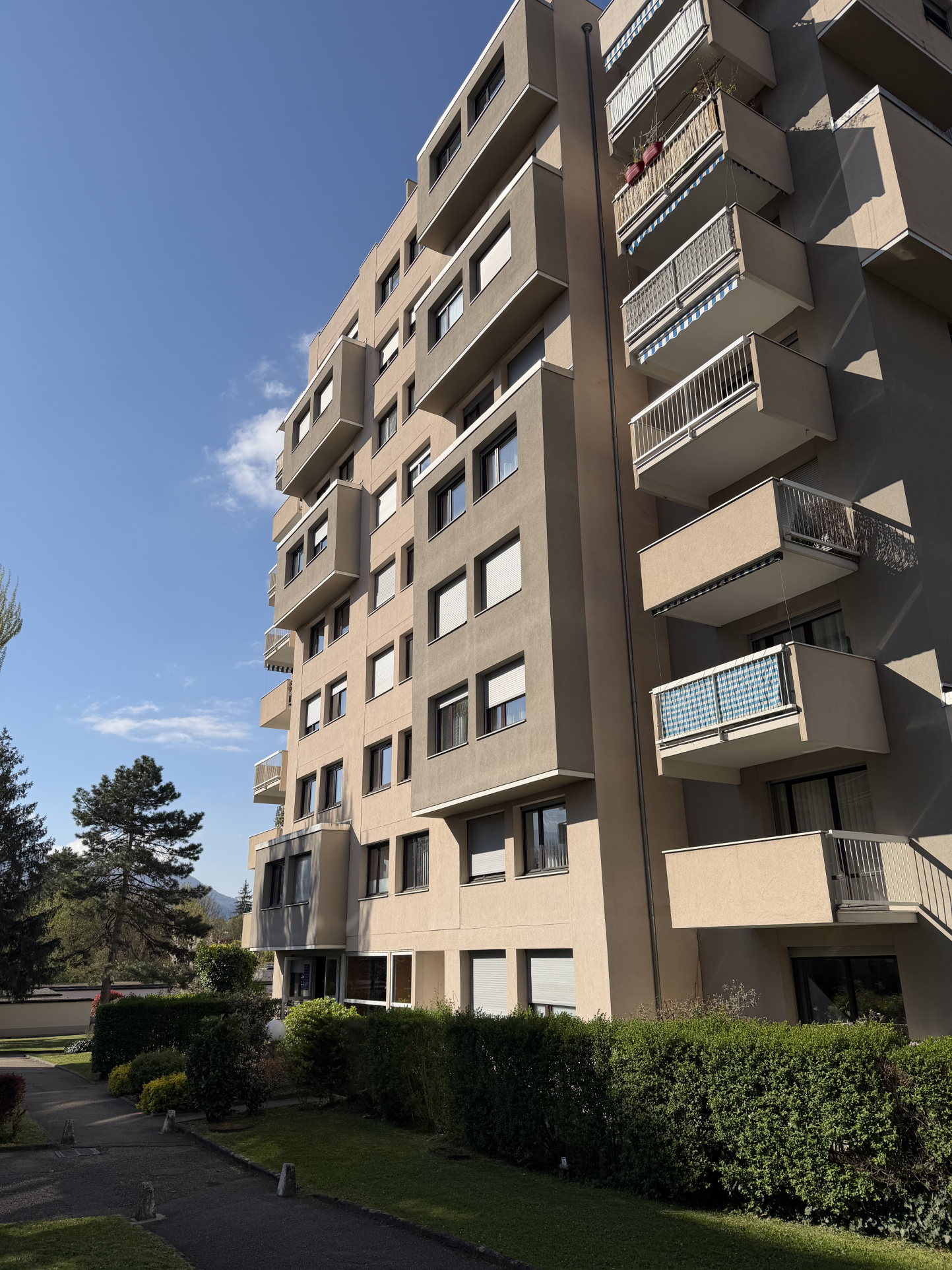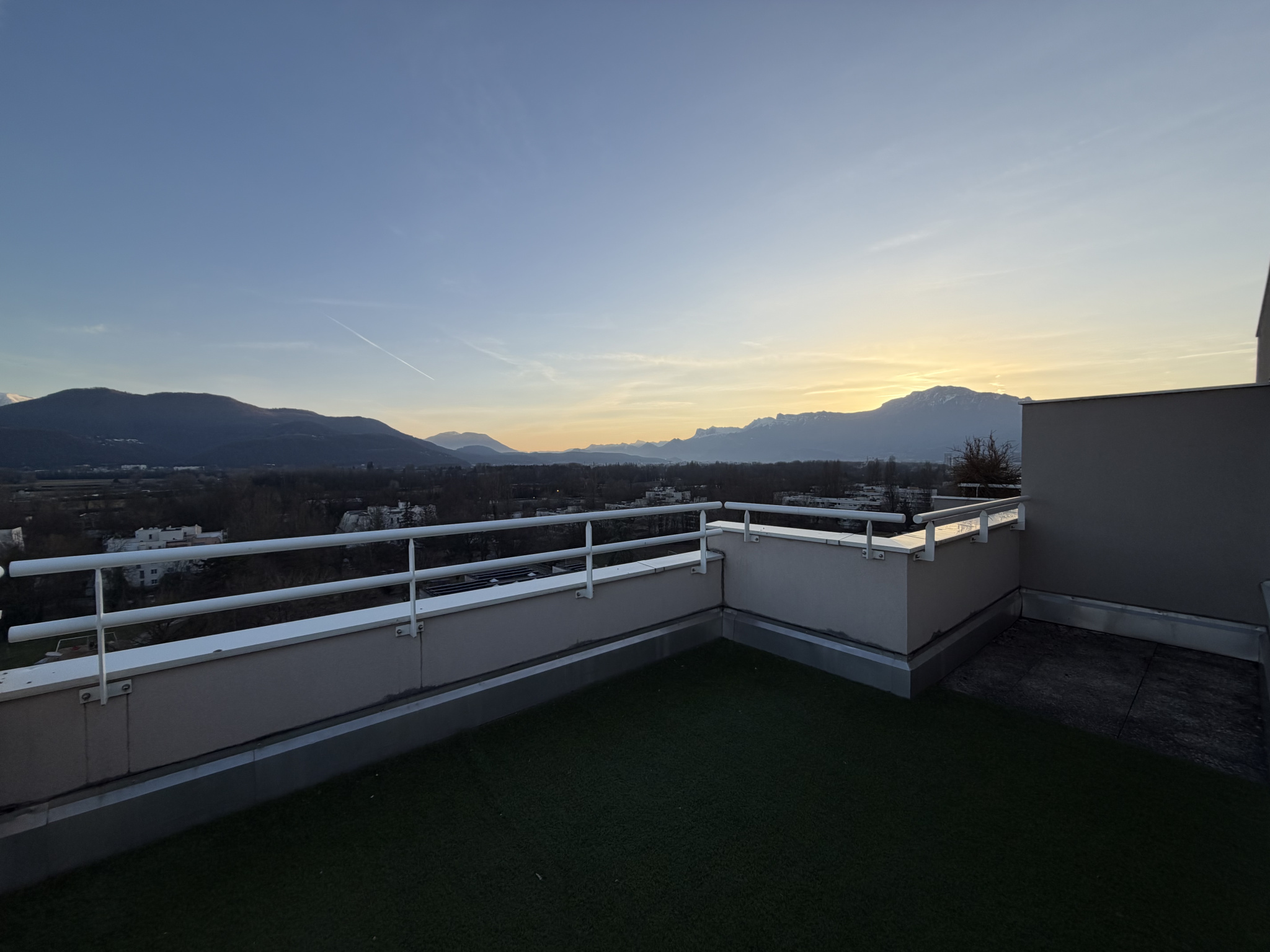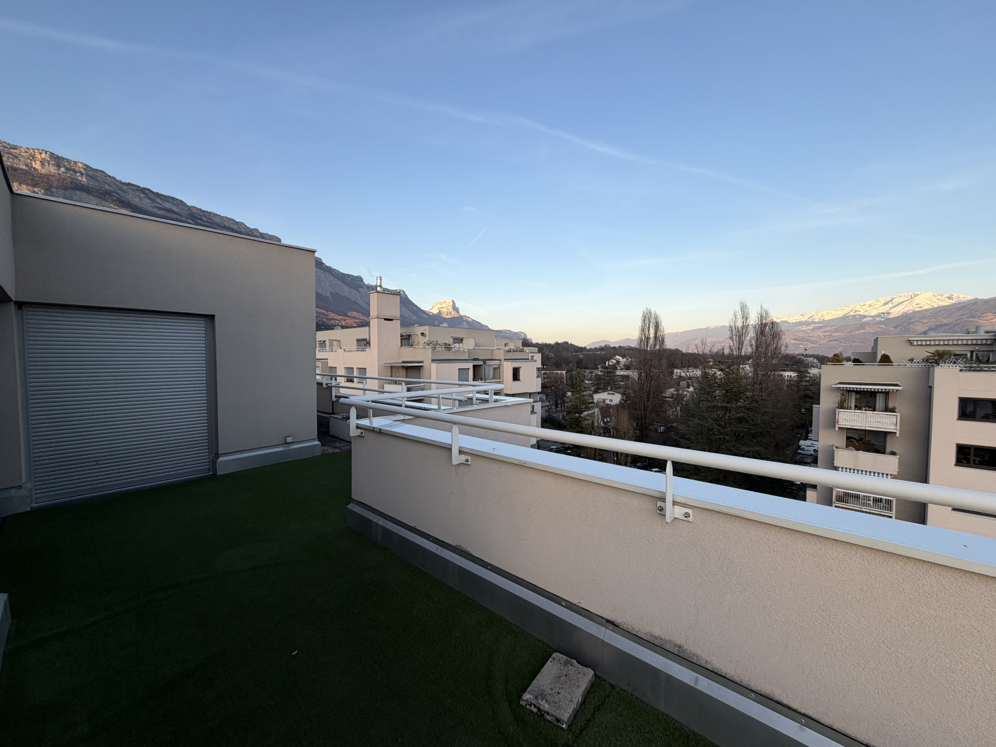 MEYLAN - 7 Av du Vercors - 2P+C 46.54m² - 9 ème et dernier étage - très grande terrasse avec vue imprenable sur les montagnes - cusine équipée (meubles + plaques + hotte) ouverte sur le séjour donnant sur la terrasse - salle d'eau avec sèche serviette - chauffage collectif + eau chaude coll - park copro - dble vitrage - cave - Loyer 715 € + 80€ Charges- Etat des lieux 138 € - Honos 605 €- Dépôt de garantie 808 € -