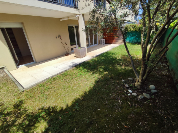 "Espace Saint Martin" à Montbonnot, joli rez de jardin de 67.59m² comprenant un séjour ouvert sur cuisine aménagée et équipée, deux chambres avec placards, salle de bains, 2 WC. Toutes les pièces donnent sur une terrasse de de 22m² et un jardin privatif de 40 m². Un garage fermé de 16.5m² vient compléter la location du bien. Eau froide collective, chauffage individuel gaz, climatisation -