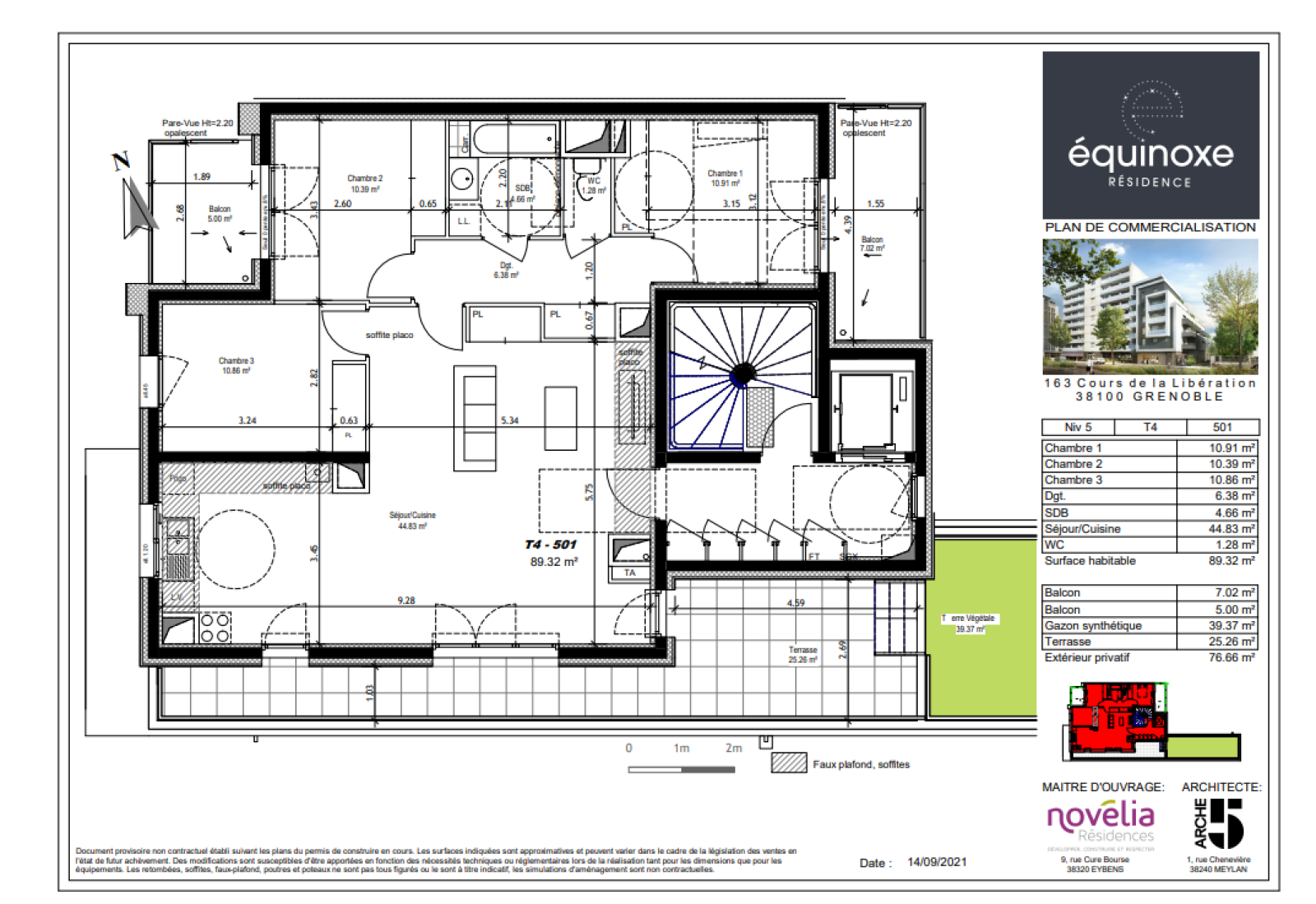 Découvrez cet appartement T4 neuf de 89,32 m² situé cours de la Libération à Grenoble.