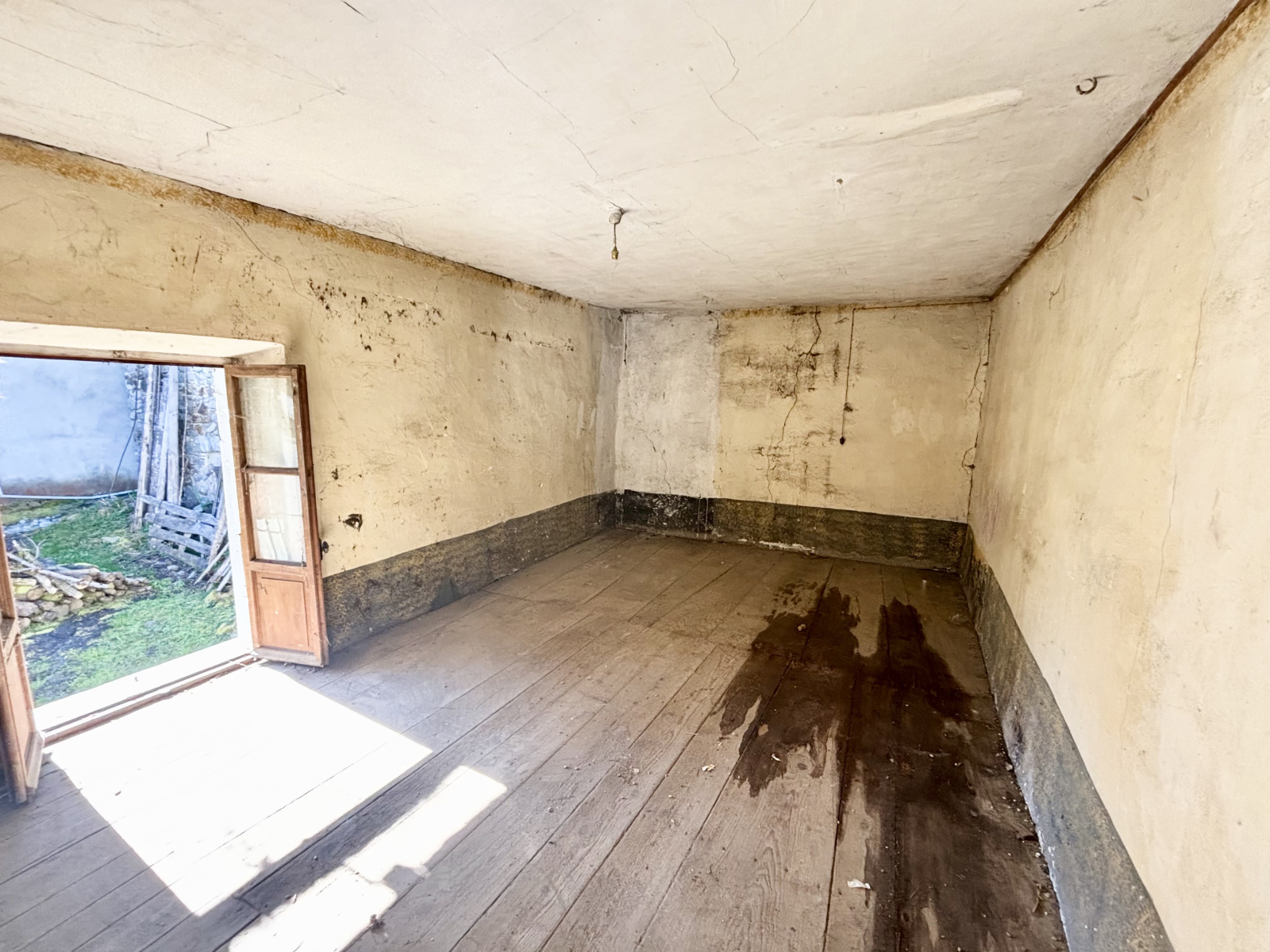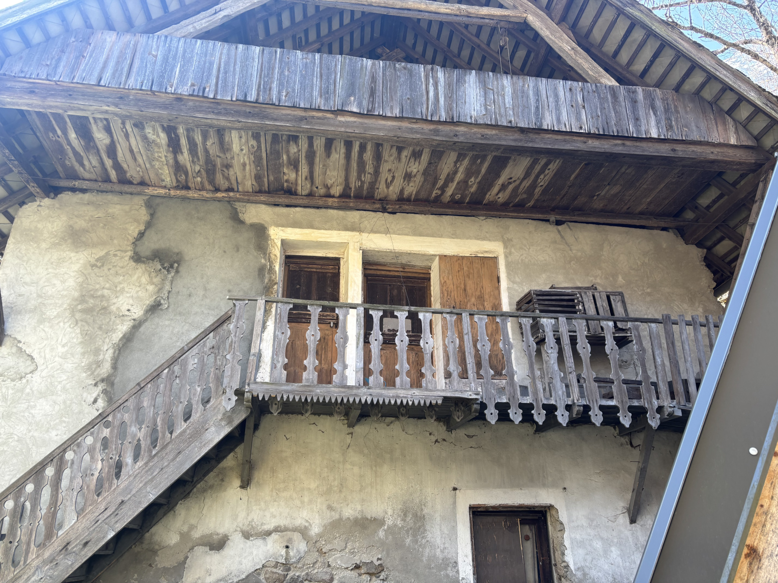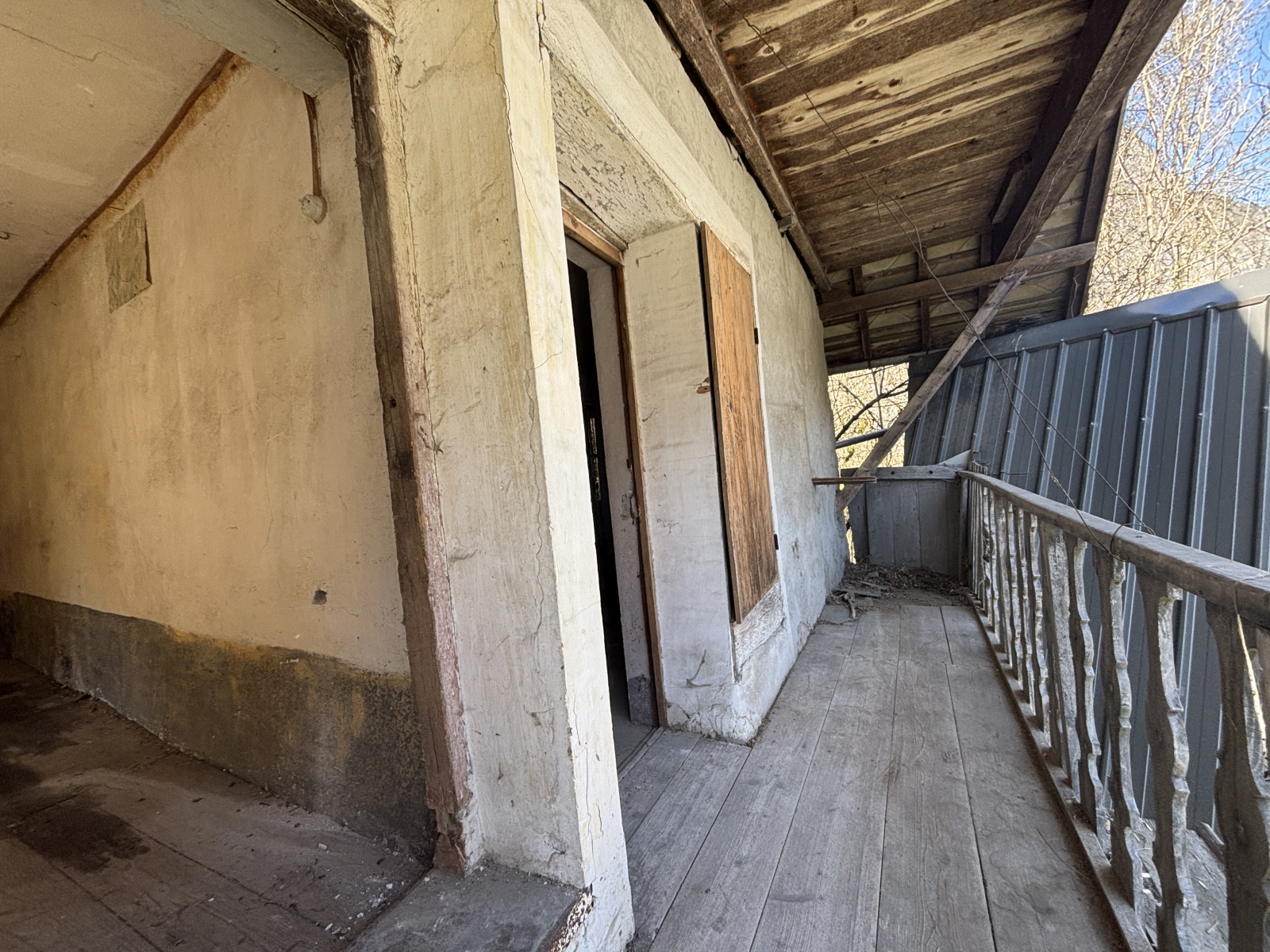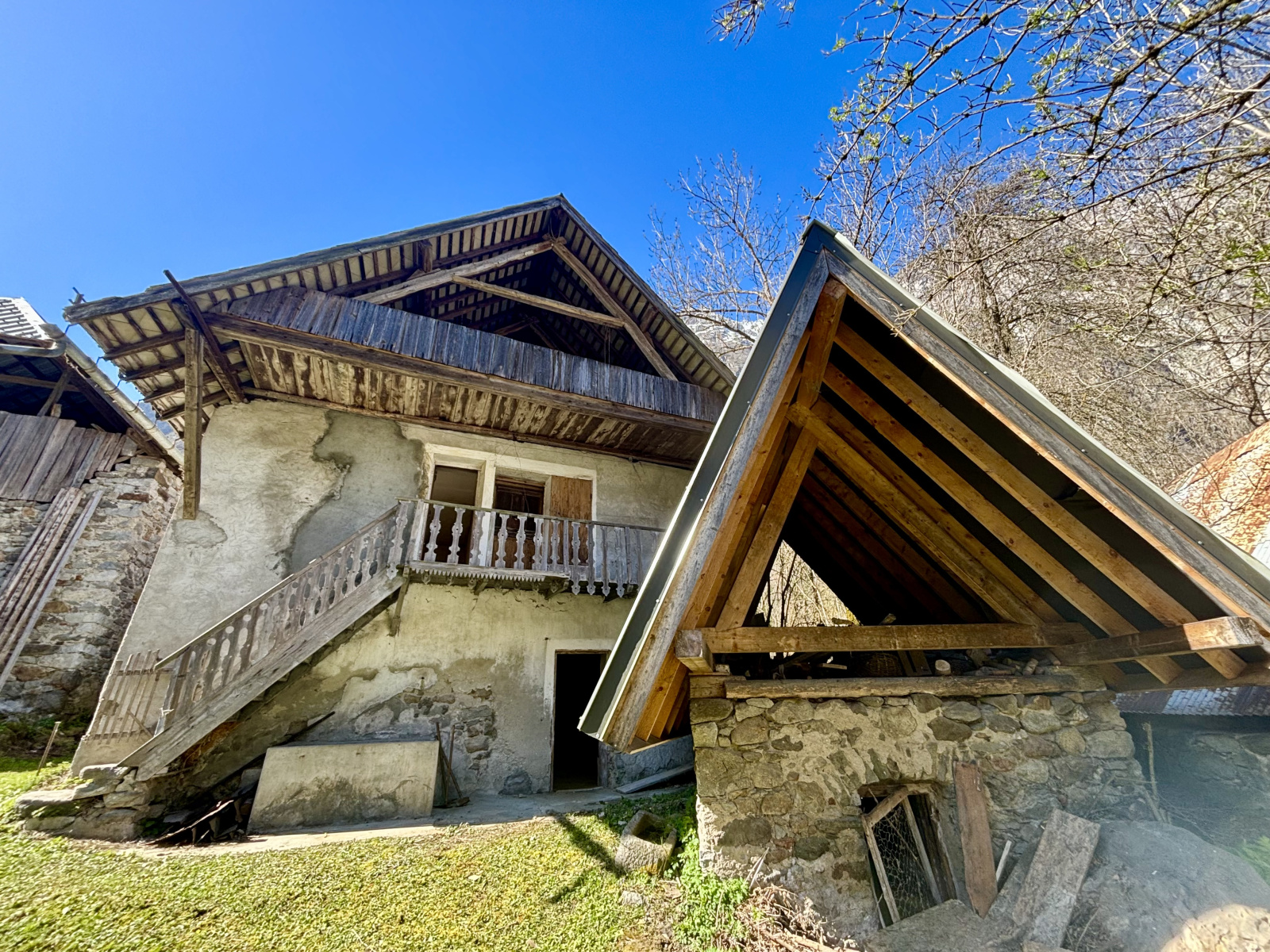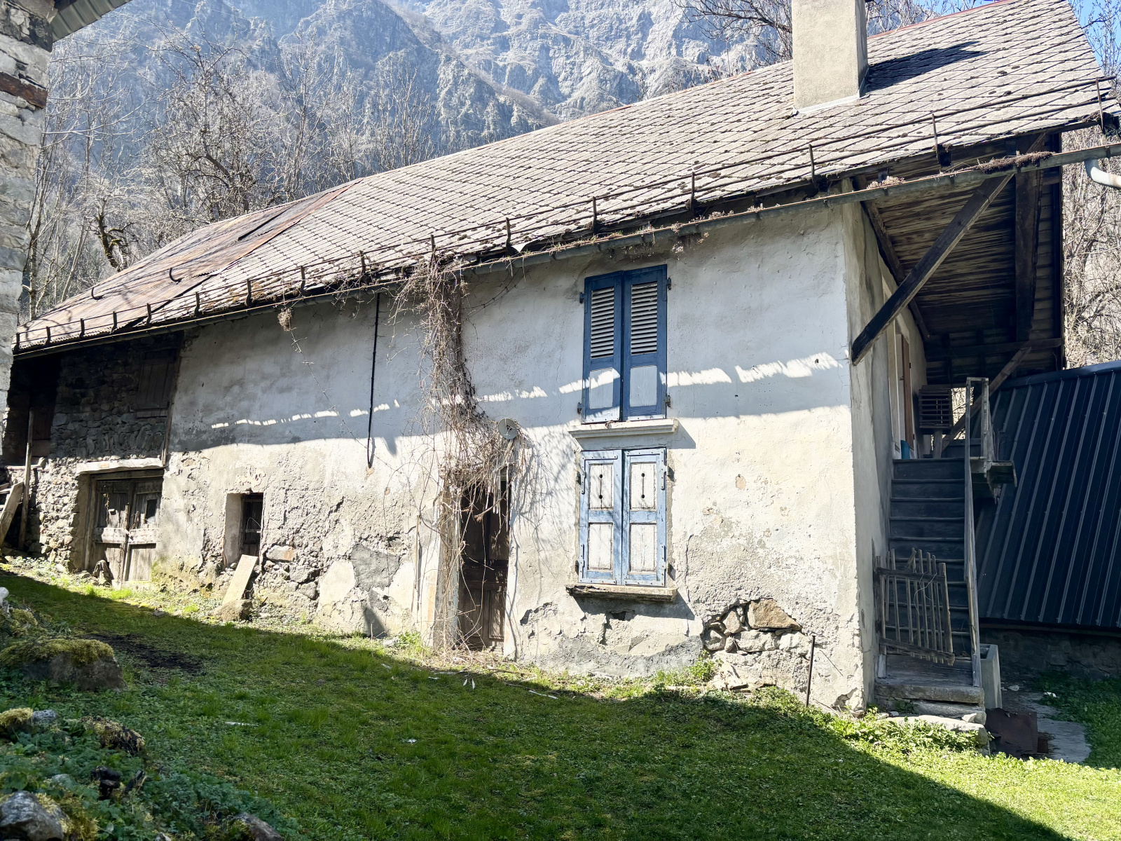 Partie habitable : Le rez-de-jardin (étage 0) comprend une grande pièce voûtée, une cuisine, ainsi que deux pièces dans le fond de la maison. À l'étage, vous trouverez deux chambres avec balcon, offrant une vue spectaculaire sur les montagnes environnantes.