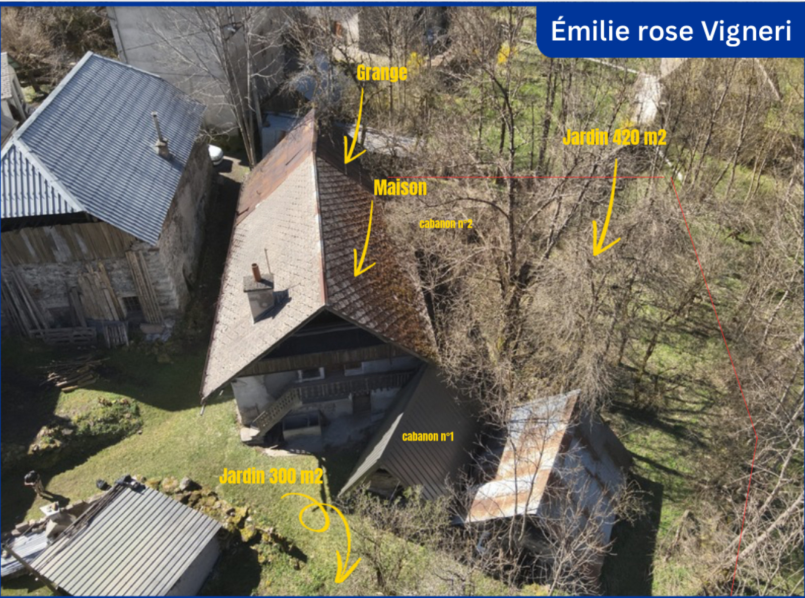Terrains et annexes : Ce bien unique est vendu avec plusieurs parcelles :