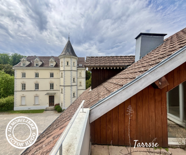 Le séjour, lumineux et bien agencé, s’ouvre sur une terrasse avec une vue dégagée emblématique sur le château, idéale pour profiter d’un extérieur dans un cadre paisible et majestueux.